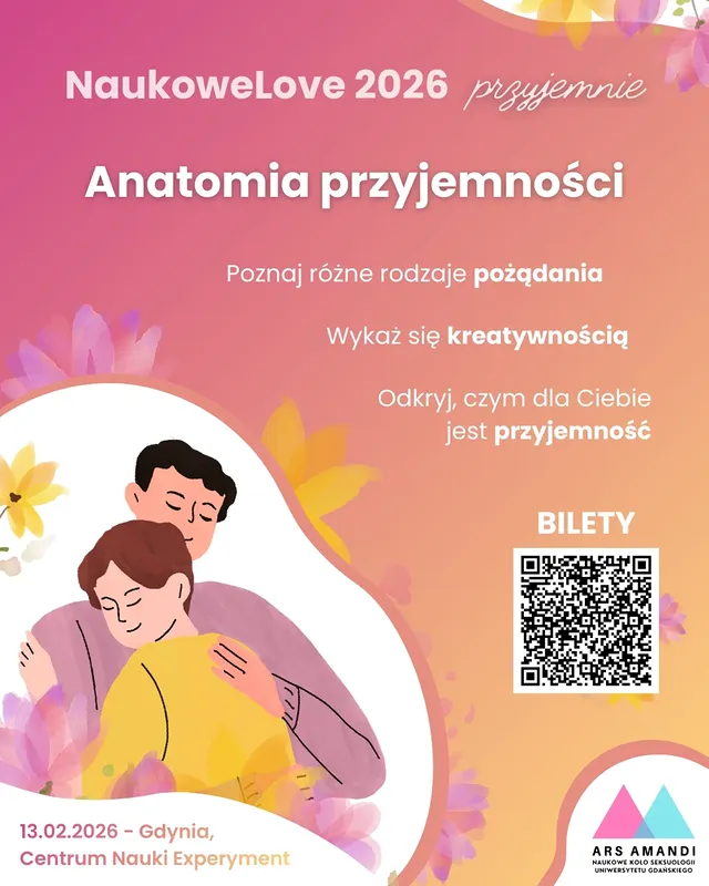 Tegoroczna edycja Naukowe Love odbędzie się w piątek 13.02.2026, w godzinach 19:00–23:00, w przestrzeni CNE w Gdyni. Hasłem przewodnim wydarzenia jest słowo „Przyjemnie” — rozumiane jako świadome doświadczanie przyjemności, bliskości i kontaktu ze sobą oraz z innymi ✨